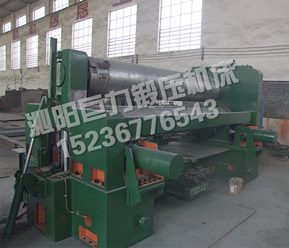 2. The three working rolls are all active rolls. The lifting of the upper roll and the translation of the two lower rolls are controlled by NC to ensure good feeding and winding function for sheets of any thickness, and the sheets are always clamped to avoid sliding and deviation.