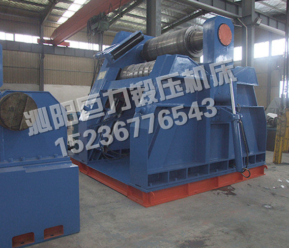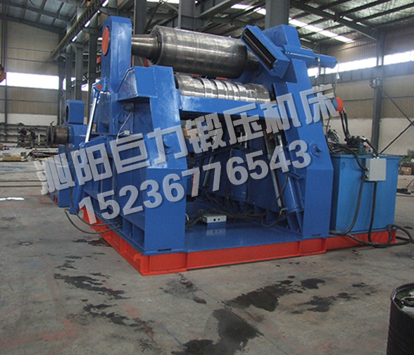 該四輥卷板機與對稱三輥卷板機比較,它可以不借助其它設(shè)備模具,直接予彎板材端部,而且剩余直邊較小;它可以不使板材調(diào)頭,而卷成工件。